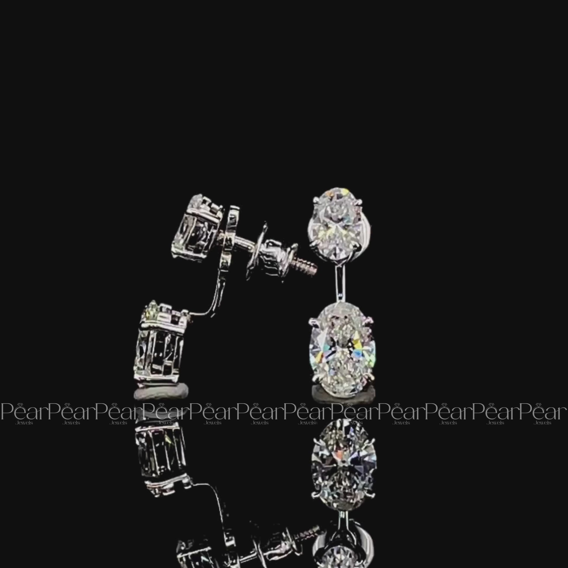 Versatile and eye-catching, these two-in-one oval diamond studs feature removable jackets for a dual-look design. Each stud showcases a 0.5ct oval lab-grown diamond at the center, enhanced by a detachable 1.0ct diamond , allowing you to switch from simple elegance to bold brilliance in seconds. A perfect blend of style and practicality for any occasion.