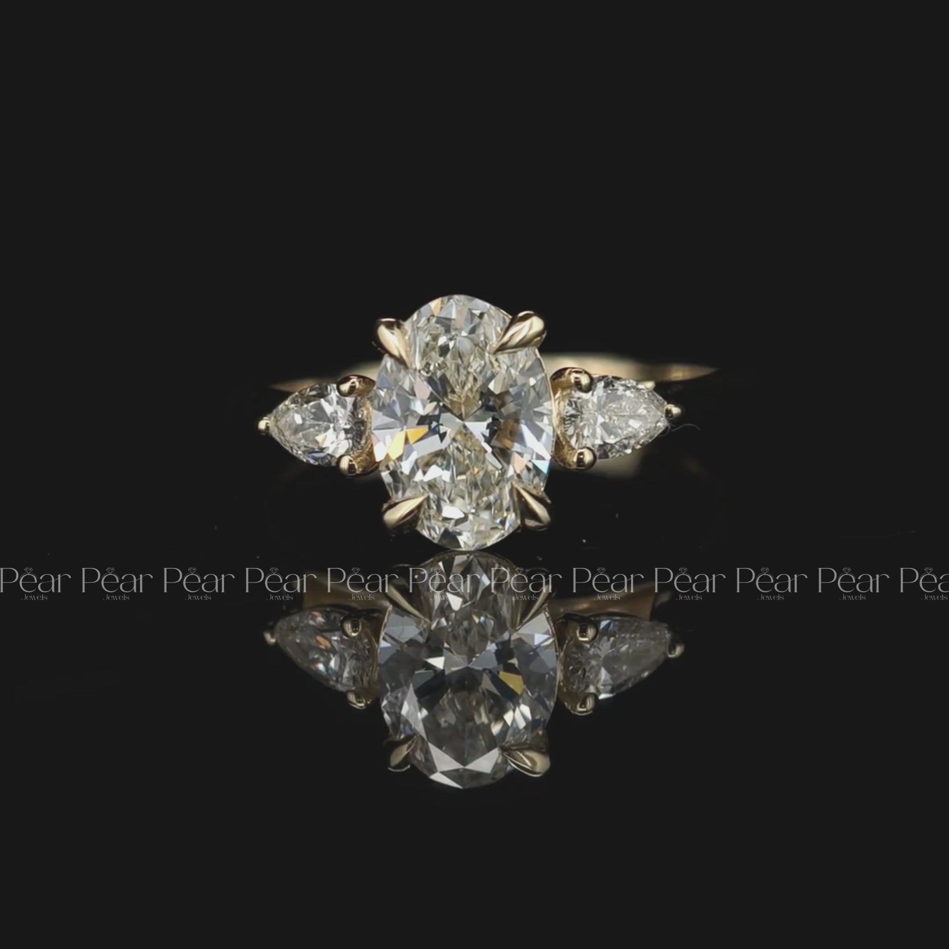 1.5Ct Oval & Pear Three Stone Labgrown Diamond Engagement Ring