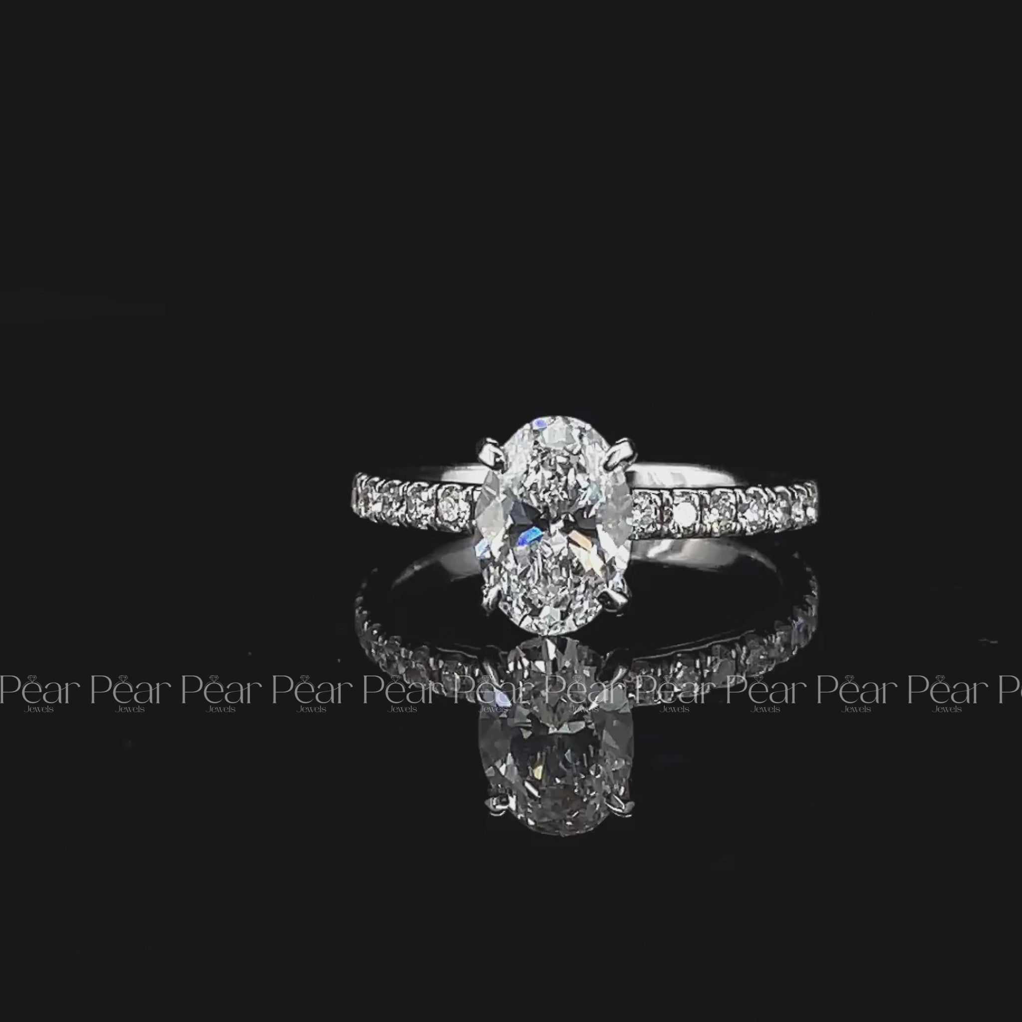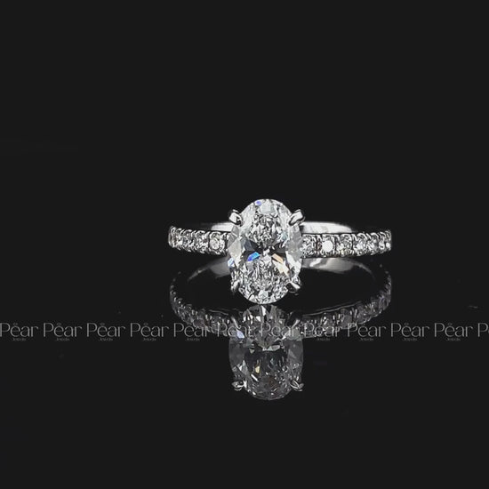 Romantic and radiant, this engagement ring features a 1ct oval-cut natural diamond as the center stone, accented by sparkling side diamonds that enhance its brilliance. The elegant design offers both timeless beauty and added shimmer, making it a perfect symbol of love and commitment.