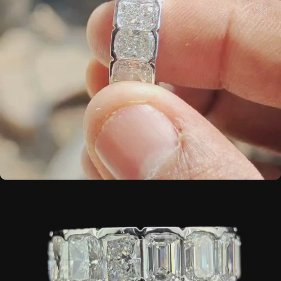 Eternity Ring Emerald and Radiant Labgrown Diamond Band