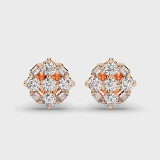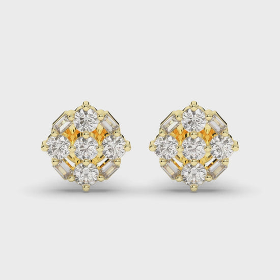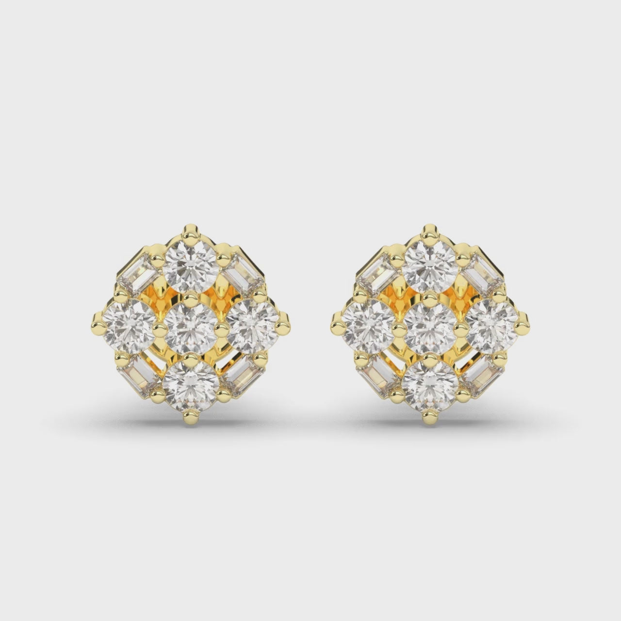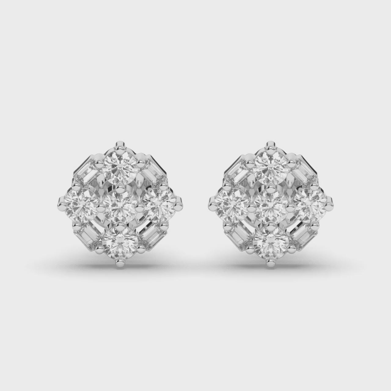 Enhance your style with these Glamour Cluster Round & Baguette Lab-Grown Diamond Earrings. Featuring a mix of round and baguette diamonds, these earrings shine brightly from every angle. Perfect for any occasion, they bring a dash of elegance to your look. Experience the allure of lab-grown diamonds in a unique design that matches your individuality.