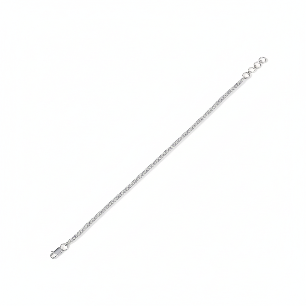This exquisite 1.0-carat tennis bracelet is a timeless expression of sophistication and style. Crafted with precision, it features a continuous line of meticulously matched 1.6mm round-cut diamonds that shimmer with every movement. Each diamond is set in a classic, secure setting that enhances its brilliance while maintaining a sleek and elegant profile. Perfect for both everyday wear and special occasions, this bracelet adds a touch of refined luxury to any ensemble. Whether worn alone or stacked with other pieces, it’s a graceful statement of enduring beauty.