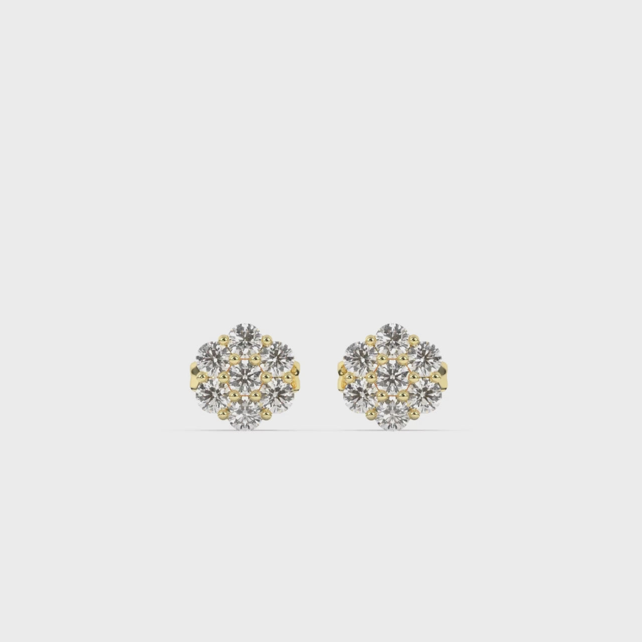 Brighten up your look with these Blooming Flower Round Lab-Grown Diamond Stud Earrings. Each stud has a pretty flower design with round lab-grown diamonds that sparkle beautifully. These earrings are a timeless choice, perfect for daily wear or special occasions, blending classic beauty with a modern touch.