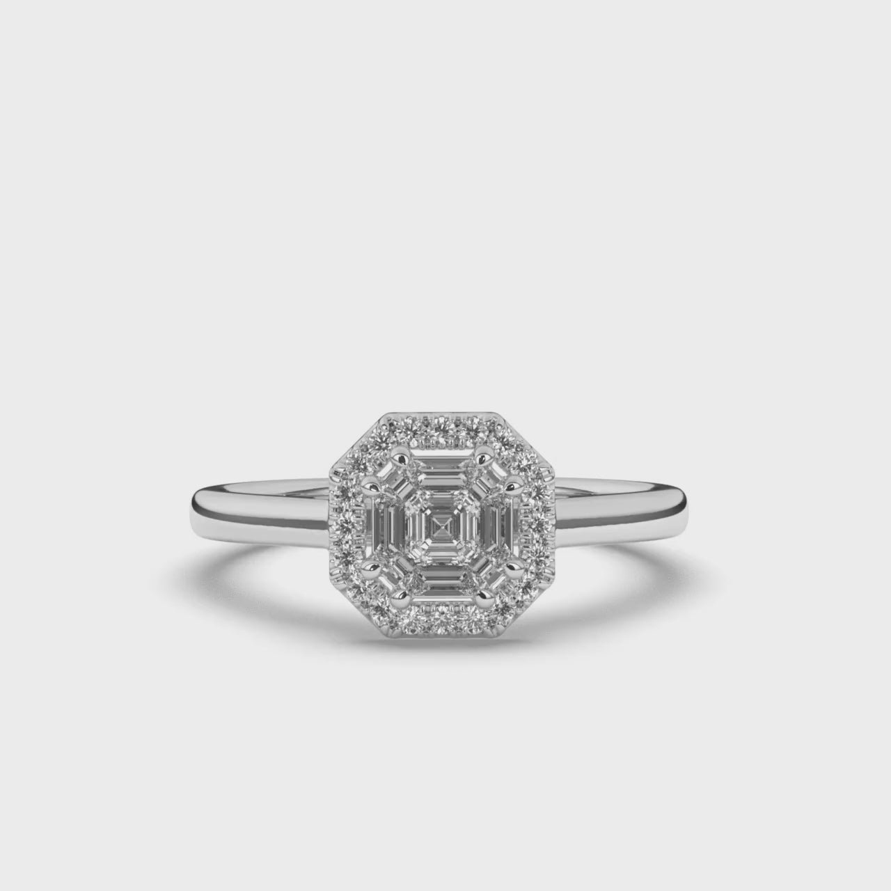 Indulge in Luxury with this exquisite Classic Halo Asscher-Cut Lab-Grown Diamond Wedding Ring, surrounded by a halo of sparkling diamonds.