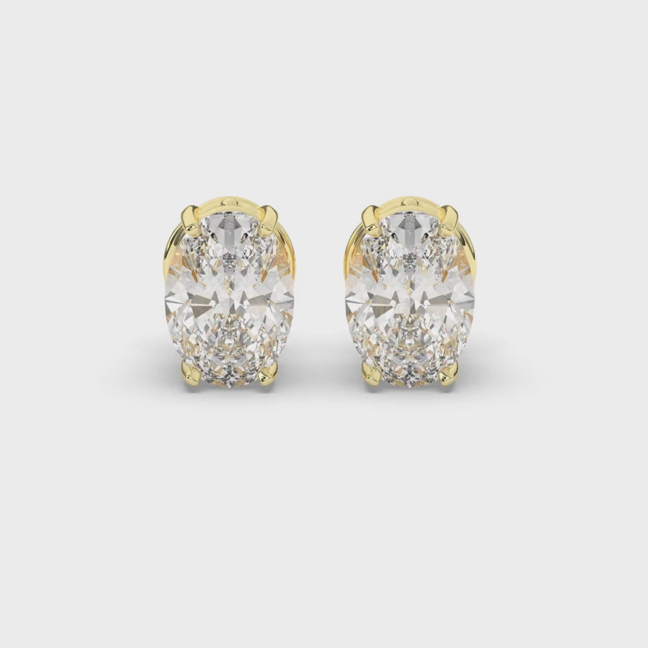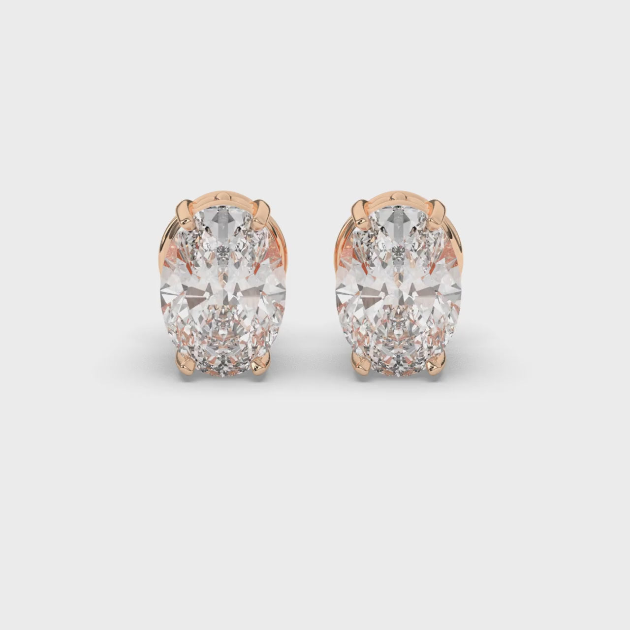 Experience the future of luxury with these stunning studs. The radiant oval diamond, set in a classic prong setting, offers a timeless look without compromising on ethics.