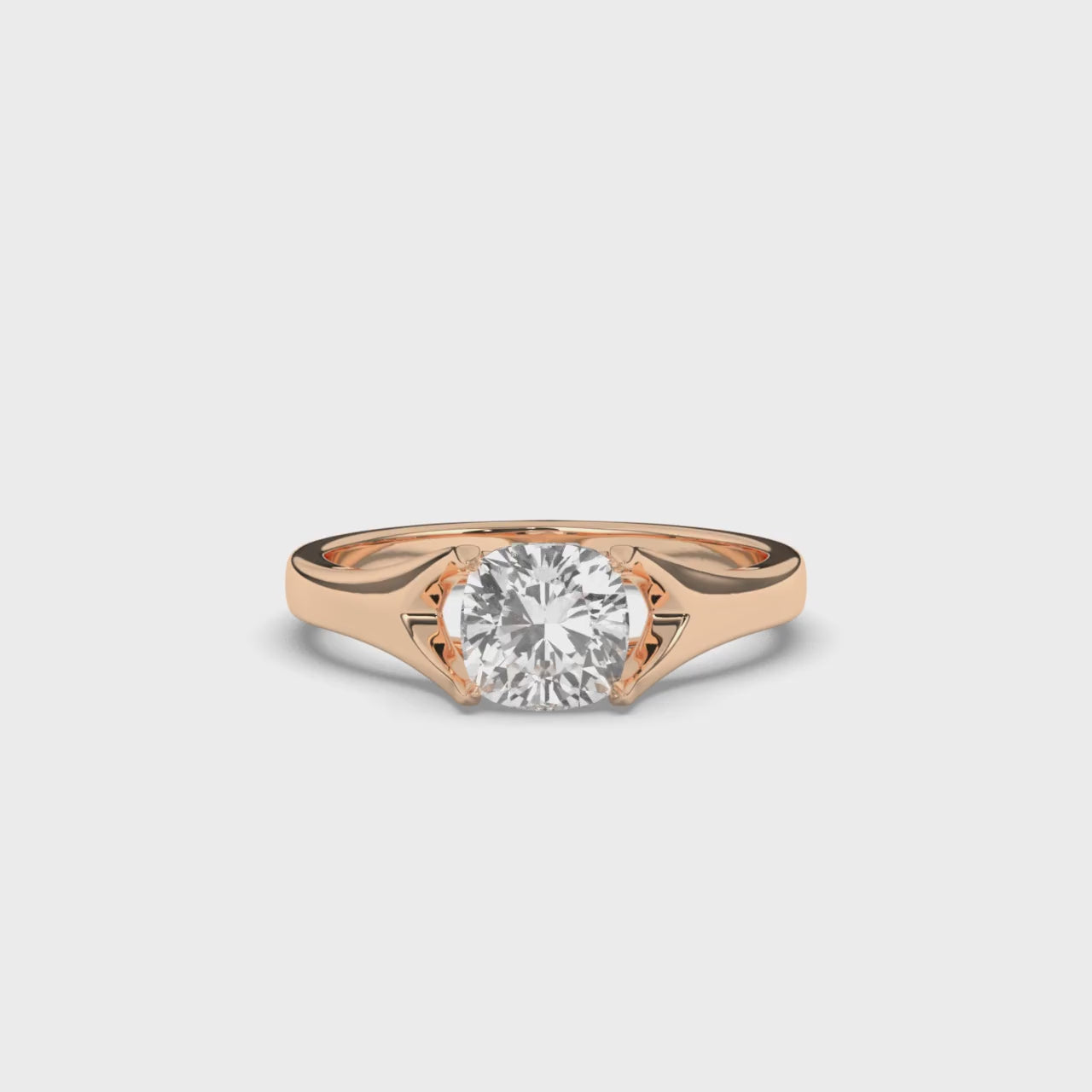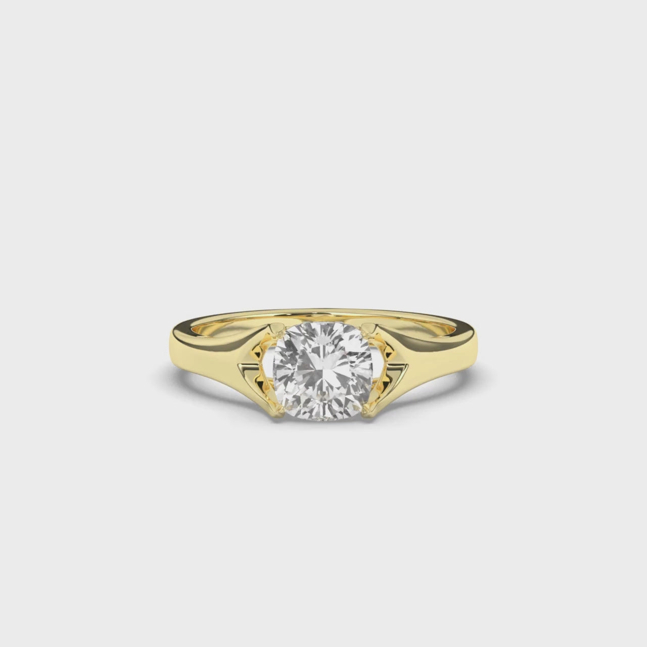 Discover the Solitaire Cushion Ring that highlights a round lab-grown diamond in a unique cushion shape, set on a smooth gold band. The clean lines and sparkling diamond make it a standout choice for any special moment.