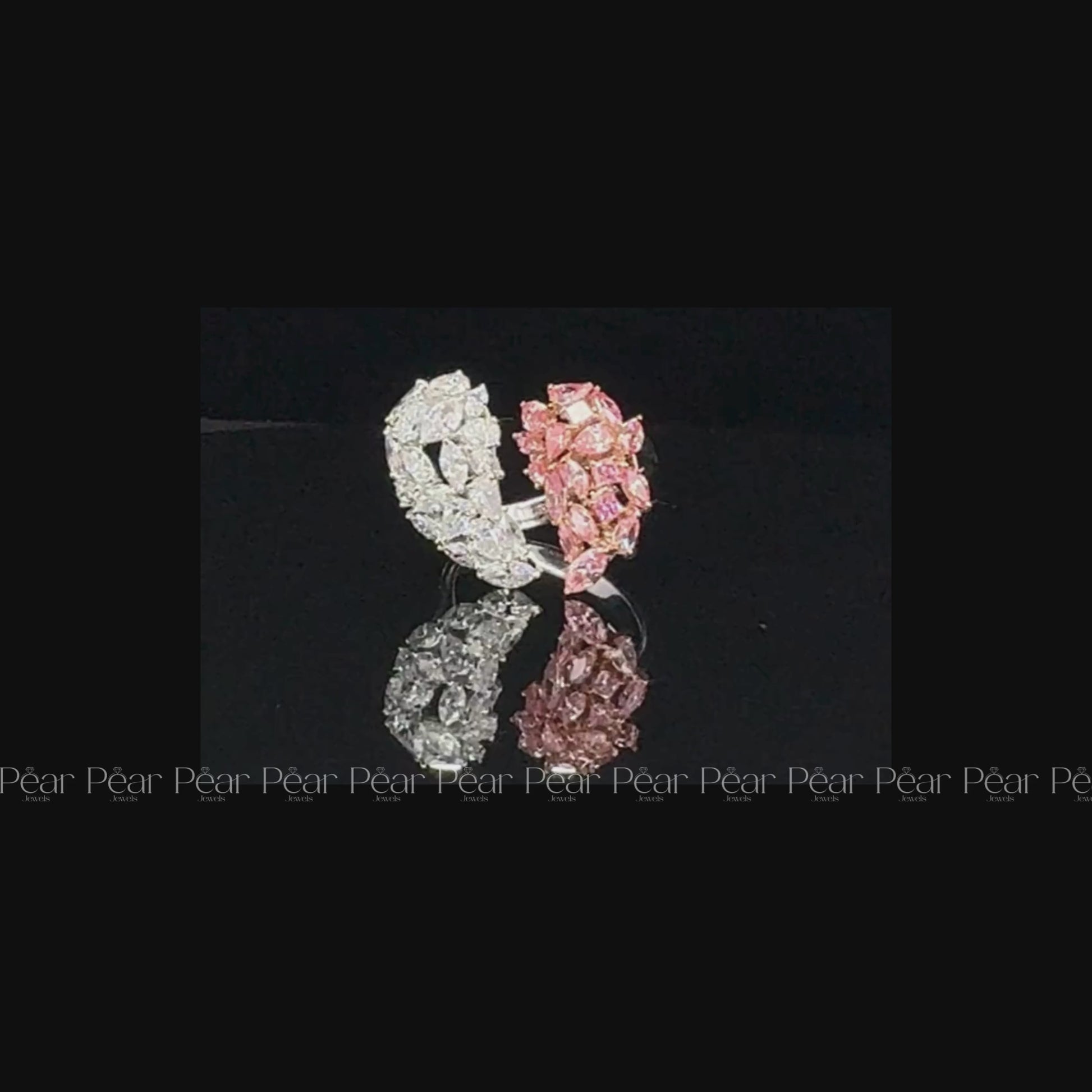 A Marquise & Pear Fancy Flower Engagement Ring features a sophisticated and romantic floral design. The ring is crafted with a center cluster of marquise-cut and pear-shaped diamonds or gemstones arranged to resemble delicate petals of a blooming flower. Surrounding the cluster is a fine halo of smaller diamonds that accentuate the floral motif.