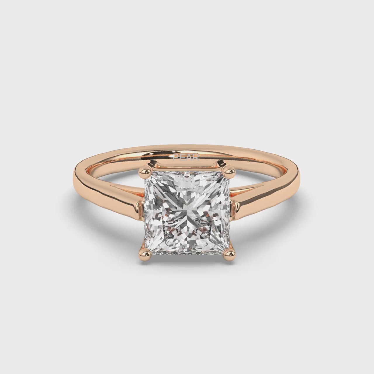 Check out the Princess Halo Solitaire Ring. It features a gorgeous princess-cut lab-grown diamond, surrounded by smaller diamonds that really make it shine. This ring mixes modern style with classic charm, making it a perfect choice for celebrating your love.