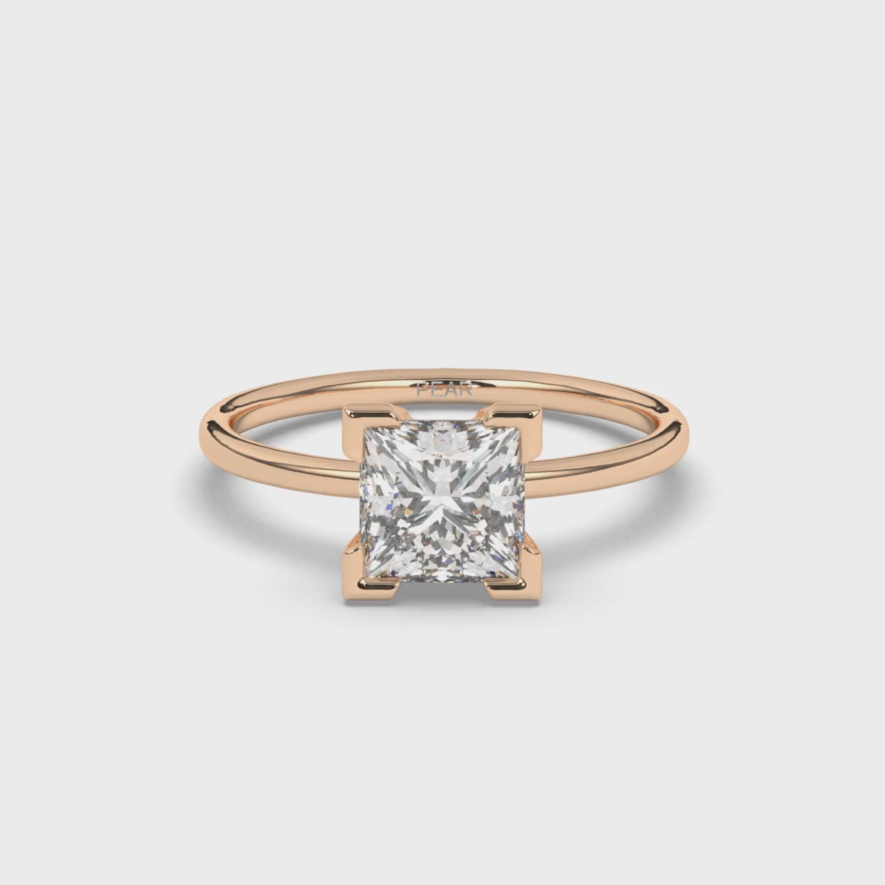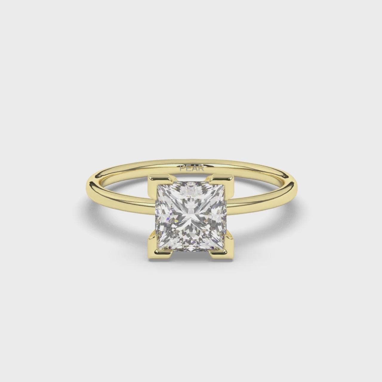 Experience modern elegance with the Princess Diamond Ring. The sharp, sparkling princess-cut diamond is securely set in prongs, enhancing its shine. Customize it with luxurious gold finishes to match your style.