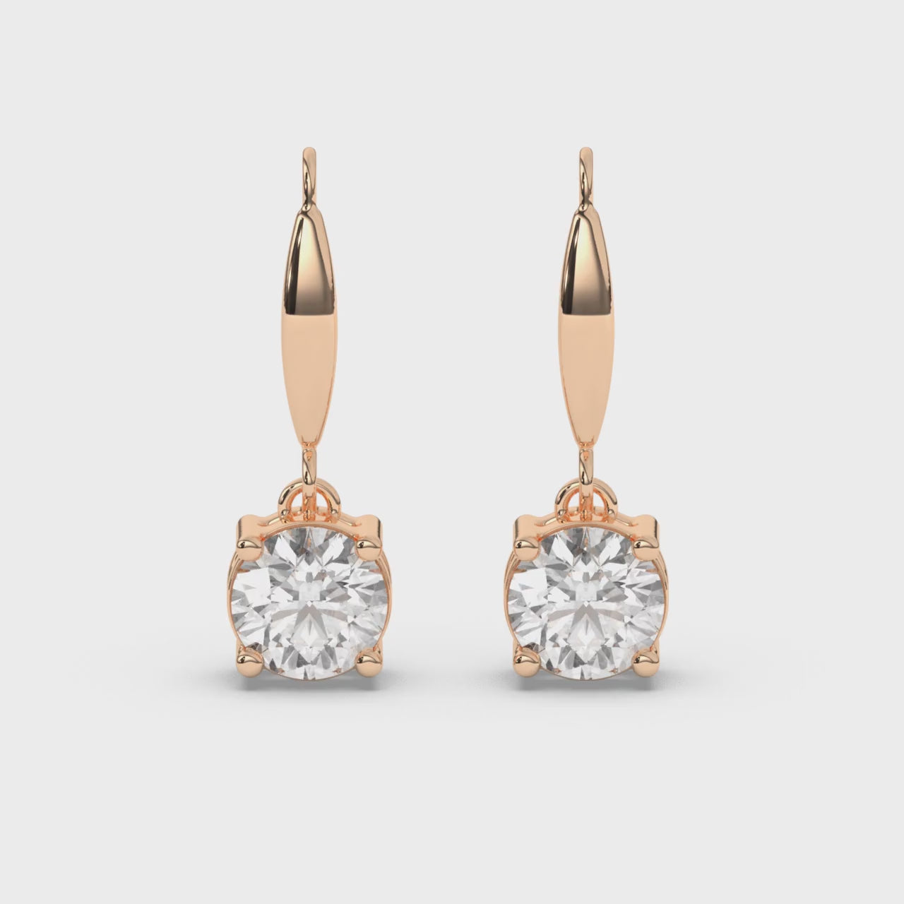These Radiant Round Lab-Grown Diamond Dangle Earrings bring a touch of luxury to any outfit. Crafted with sparkling round diamonds that shimmer with every movement, they offer a refined yet striking appeal. Whether it's a casual outing or a formal occasion, these earrings are designed to capture attention while remaining lightweight and comfortable for all-day wear.