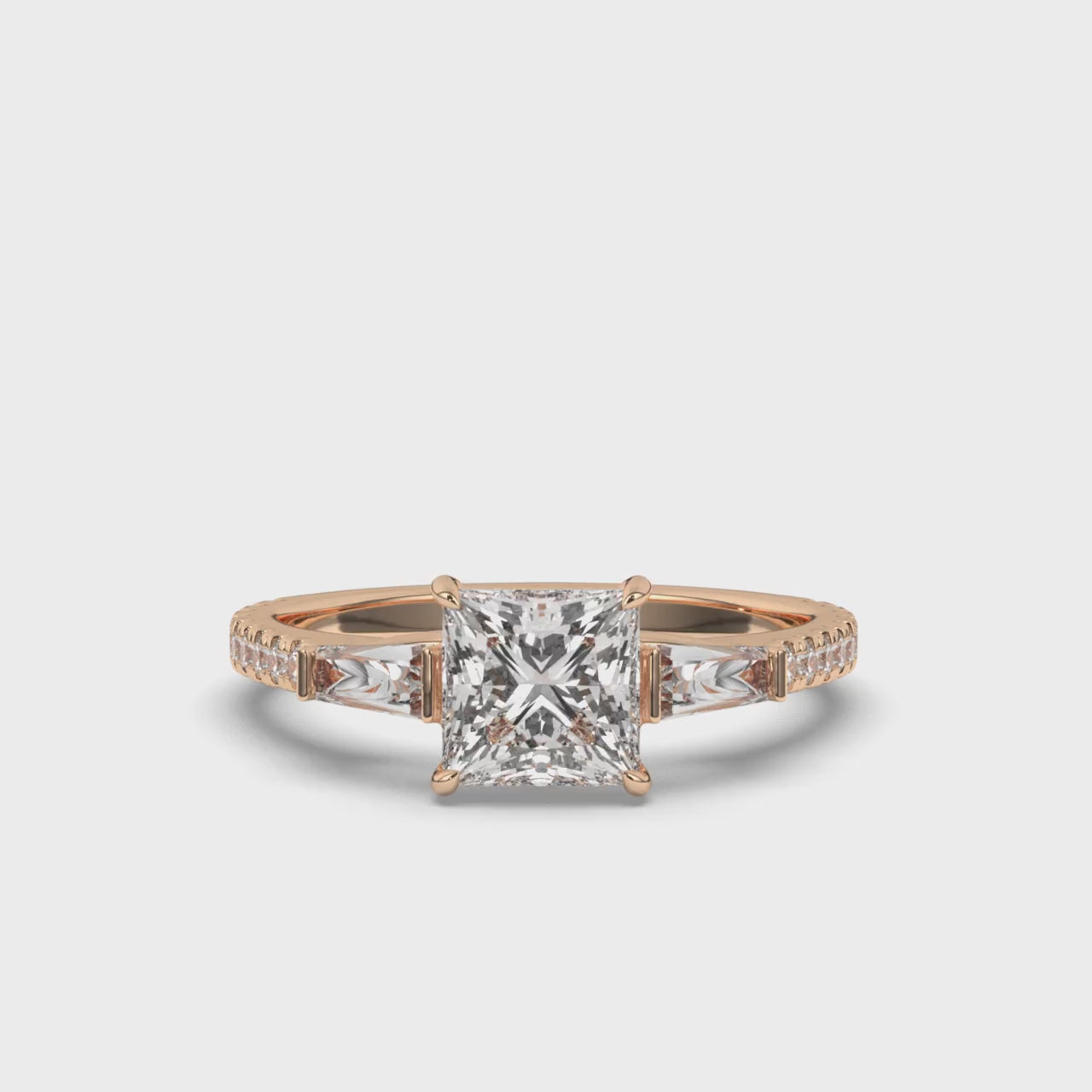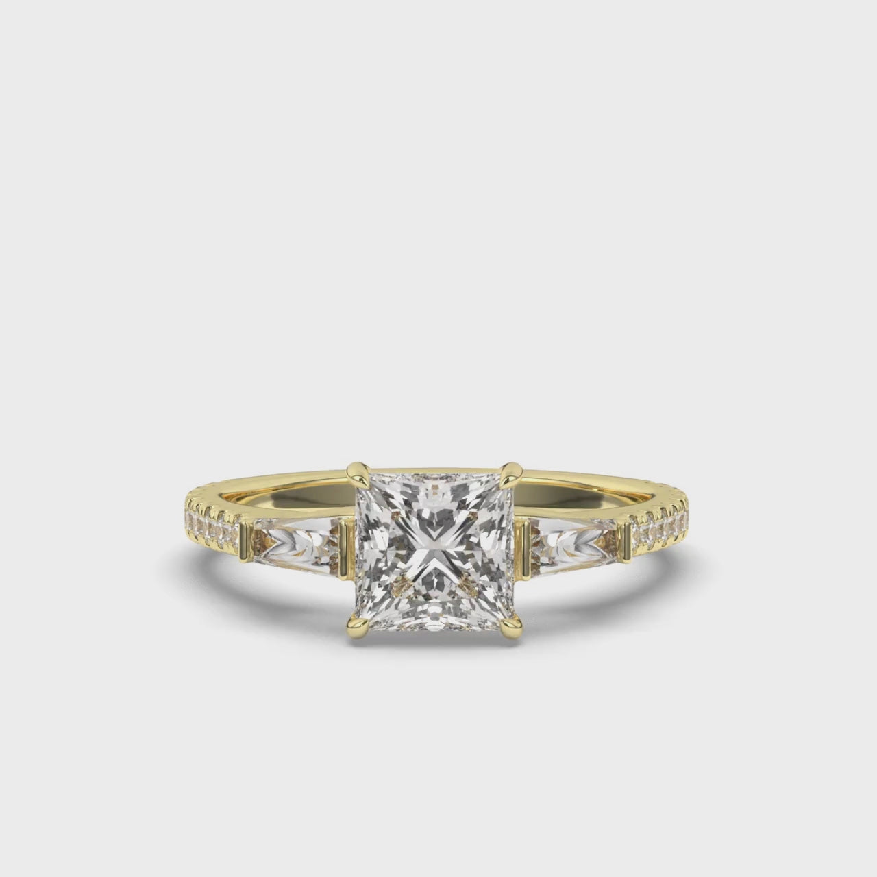Shine bright with the Three Stone Princess & Baguette Lab-Grown Diamond Ring. Featuring a striking princess diamond and refined baguette accents, this ring offers a touch of vintage-inspired elegance.